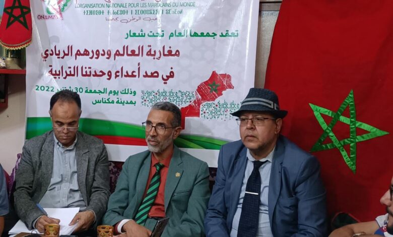عقدت الهيئة الوطنية لمغاربة العالم اليوم الجمعة جمعها العادي بمكناس، واسفر عن ذلك تجديد الثقة في السيد حميد العسلاوي لولاية ثالثة على رأس الهيئة الوطنية لمغاربة العالم .تحت شعار مغاربة العالم ودورهم الريادي في صد أعداء وحدتنا الترابية.