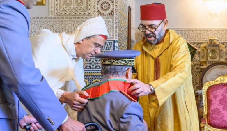 وبهذه المناسبة وشح جلالته أعزه الله، صدر الفريق أول بلخير الفاروق بالحمالة الكبرى لوسام العرش تقديرا لمساره المهني المتميز والخدمات الجليلة التي أسداها في خدمة العرش والوطن”