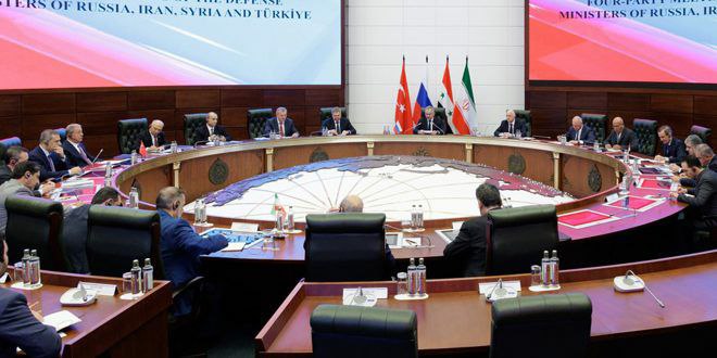 كشفت وزارة الدفاع التركية أن وزراء دفاع ورؤساء استخبارات تركيا وروسيا وإيران وسوريا اتفقوا خلال الاجتماع الرباعي في موسكو على “وحدة الأراضي السورية”.