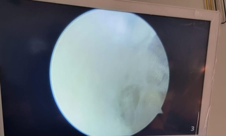 و الثانية لفائدة شابة تمارس رياضة كرة القدم تعرضت لتمزق الرباط الصليبي الامامي الايمن على مستوى الركبة و تمكن الفريق المعالج من زرع رباط بديل بثقنية المنظار دون اللجوء الى التدخل الجراحي المفتوح “ligamentoplastie du LCA sous arthroscopie”