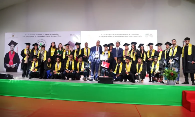 وفي كلمة بالمناسبة، هنأ السيد صديقي المتخرجين على ما بذلوه من جهود طوال مسارهم الأكاديمي داخل المعهد، مؤكدا على المكانة المهمة للمعهد ودوره الأساسي في التفاعل مع القطاع المهني من أجل تكوين مهندسين وأطباء بيطريين ذوي كفاءات عالية للمساهمة في تنزيل ومواكبة المشاريع المهيكلة لاستراتيجية الجيل الأخضر.