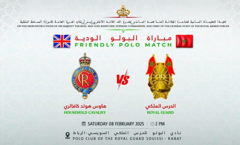 ينظم الحرس الملكي، مباراة ودية في رياضة البولو ستجمع بين فريق الحرس الملكي وفريق “هاوس هولد كافالري” البريطاني.