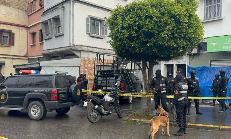 وأوضح أن تنفيذ عمليات التدخل والاقتحام أشرفت عليها عناصر القوة الخاصة التابعة للمديرية العامة لمراقبة التراب الوطني، التي قامت بتطبيق بروتوكول الأمن الخاص بالتهديدات الإرهابية الخطيرة، حيث نشرت فرق القناصة في مختلف أماكن التدخل لتحييد جميع المخاطر وأشكال المقاومة العنيفة المحتملة، وسخرت فرق الاقتحام بواسطة التسلق، كما استعانت بتقنيي الكشف عن المتفجرات وفرق الكلاب المدربة للشرطة المتخصصة في مسح وتمشيط مسارح الجريمة، التي يشتبه في احتوائها على مواد ناسفة وأجسام متفجرة.